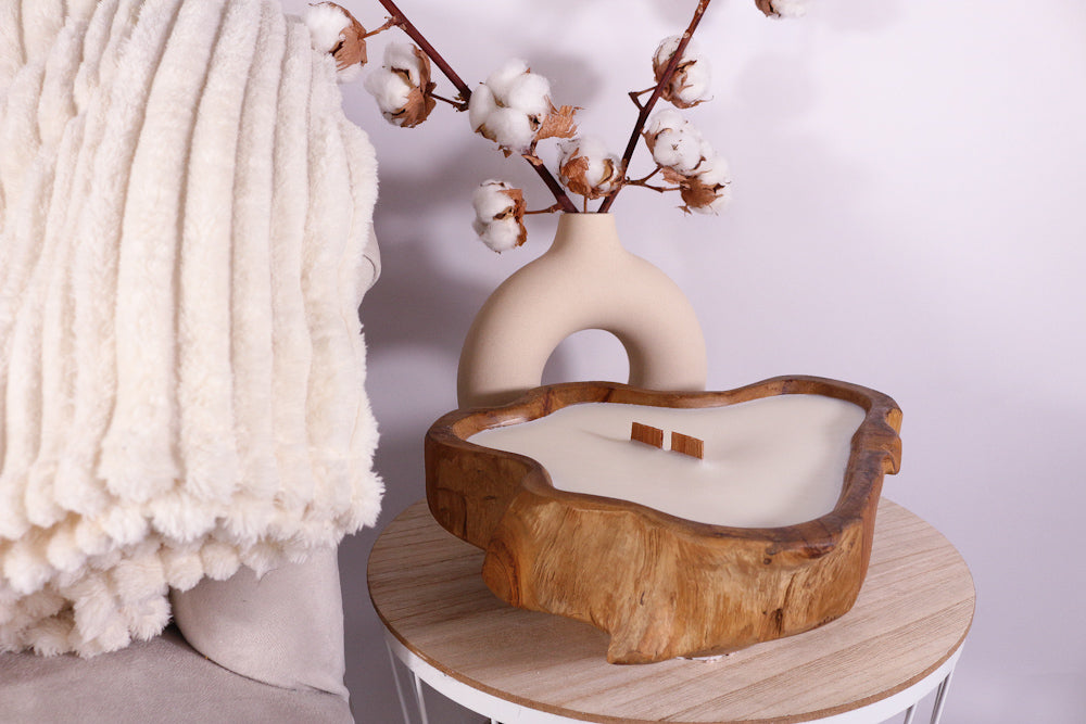 Kokosnoot bowl met witte waxmelts bloemen