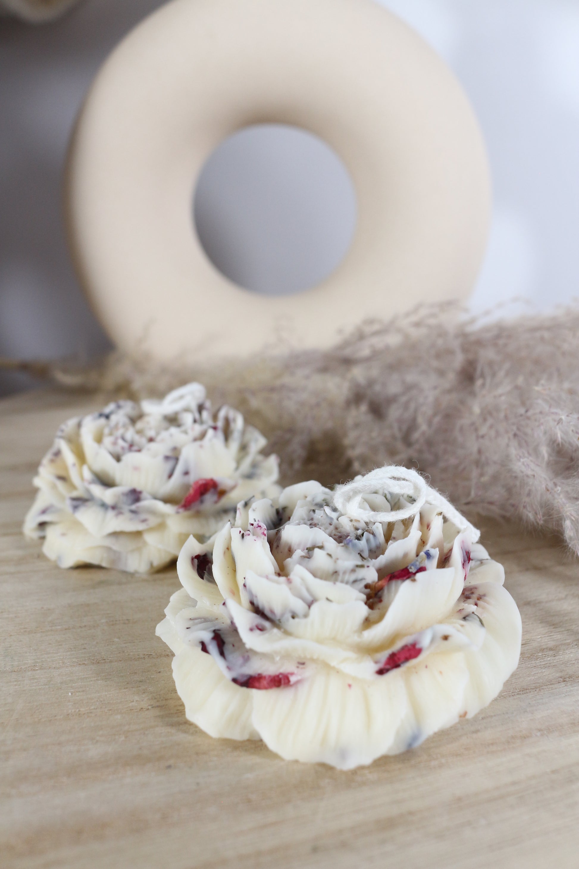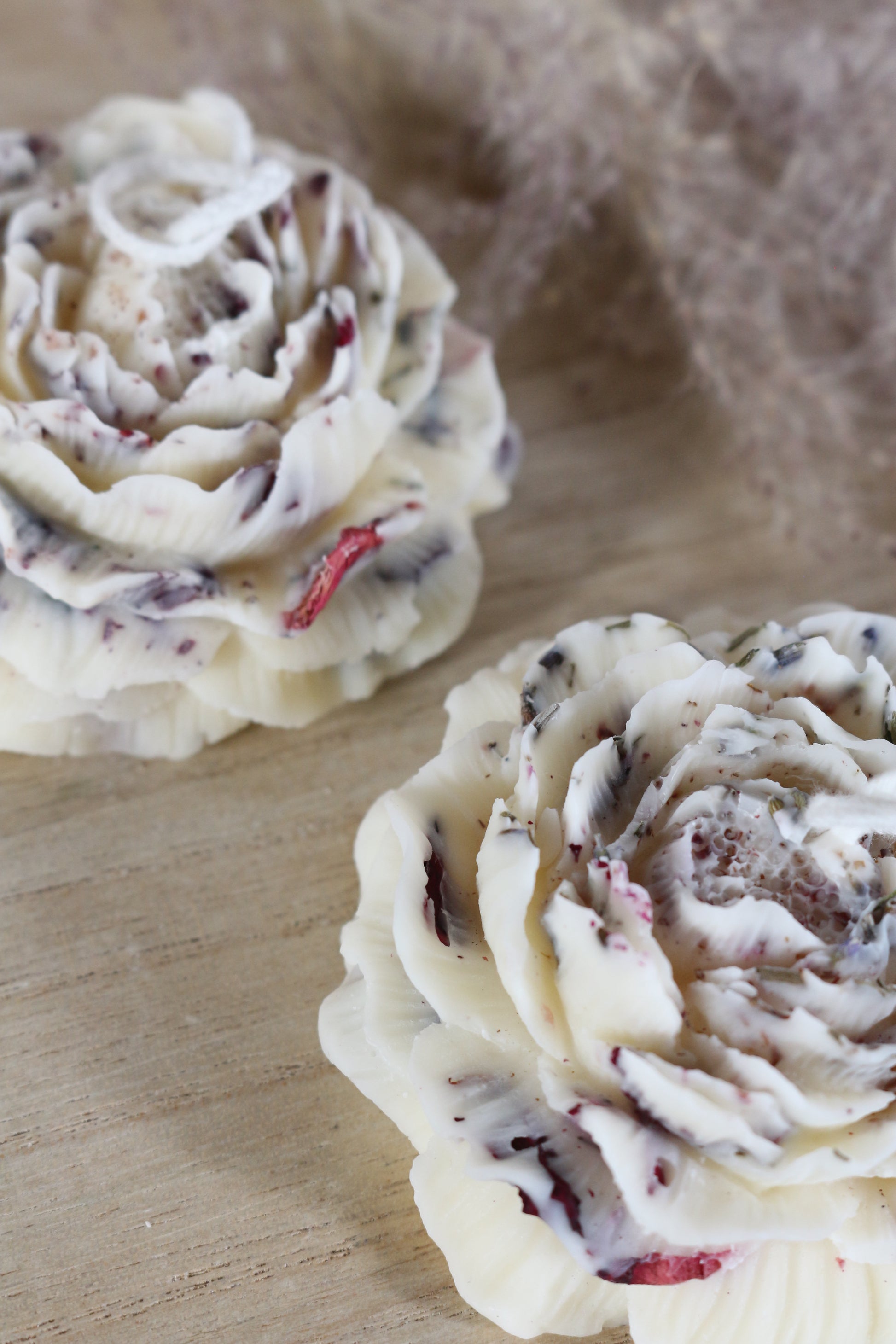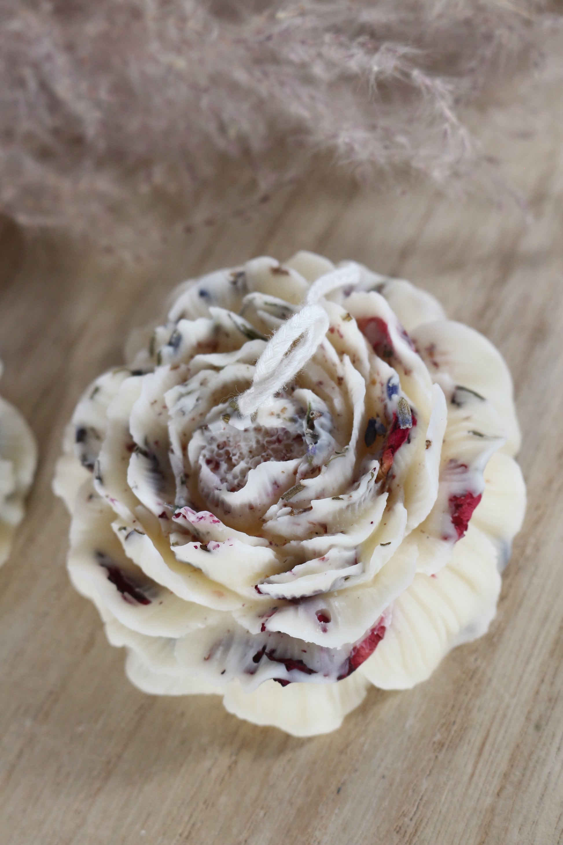 Door deze romantische roos zijn echte geurende rozenblaadjes en lavendel gegoten, even wat extra sierlijk.