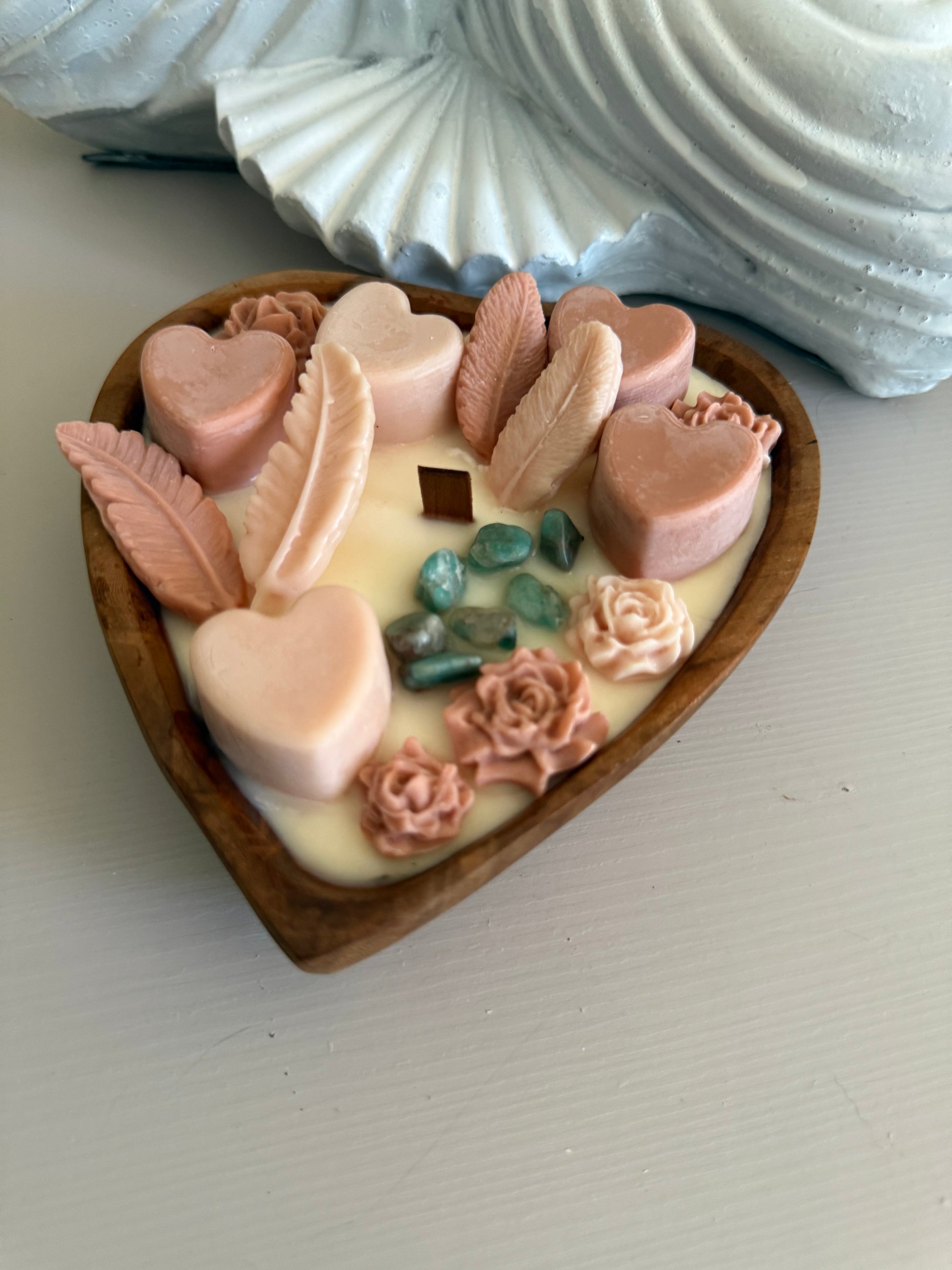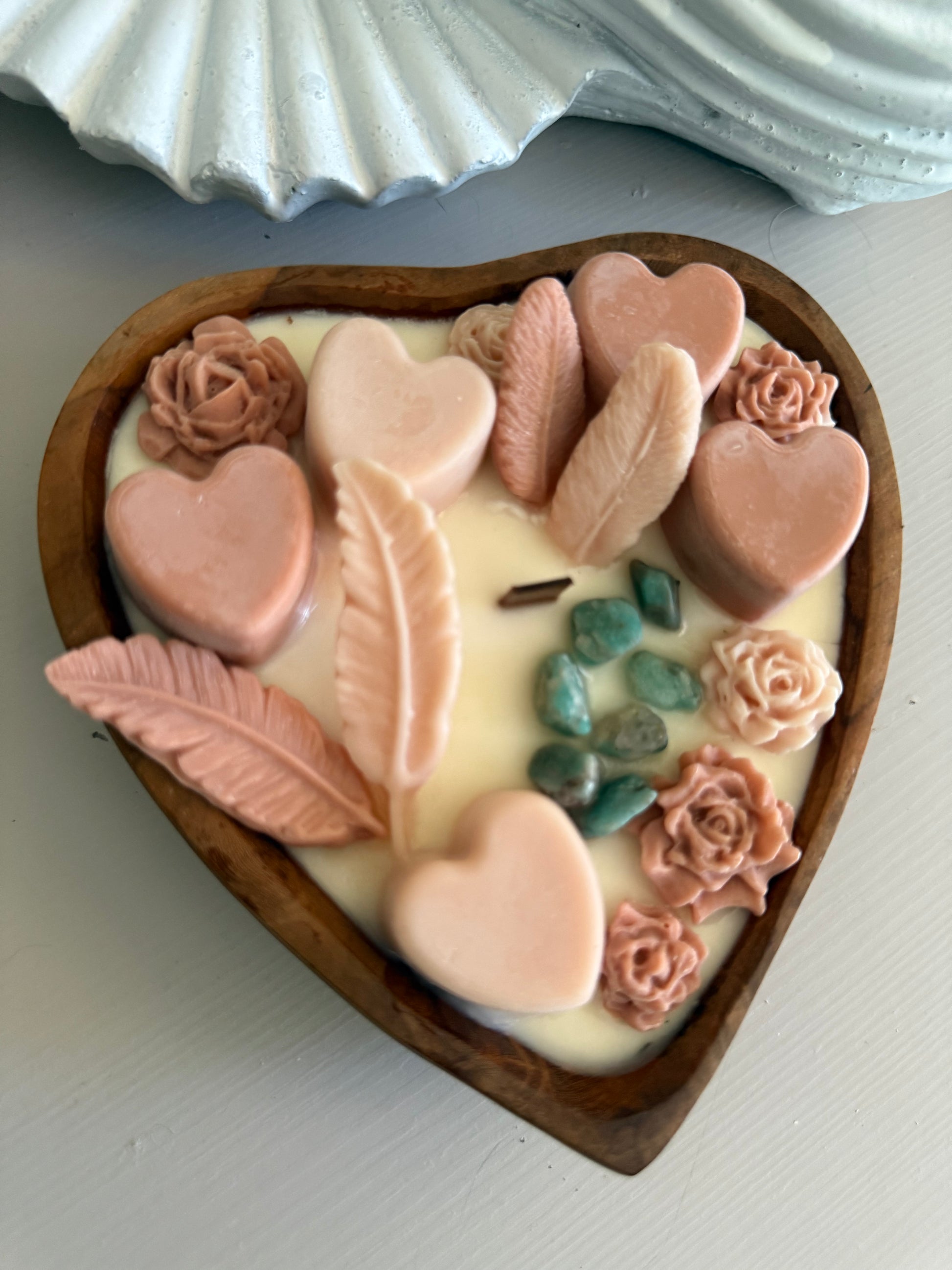 Hartvormige Doughbowl met smeltkaarsen en Amazoniet edelstenen